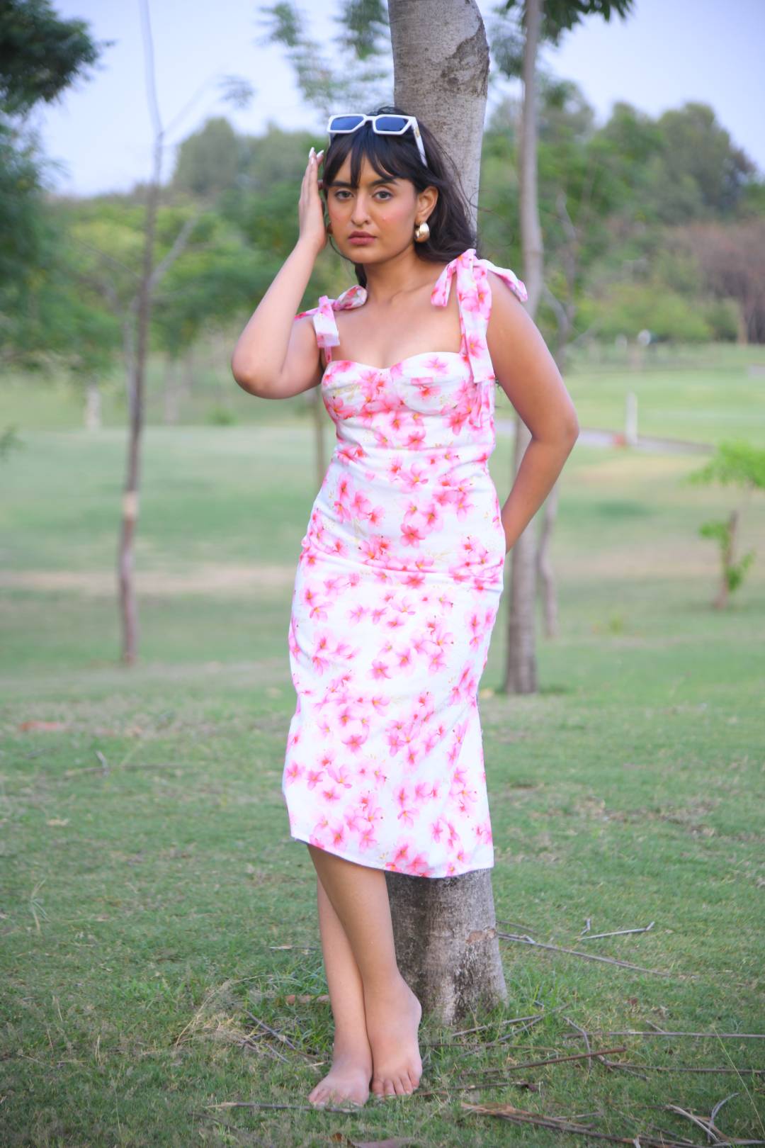 Romantic and effortless, the Pink Paradise Dress is your go-to for sunlit days and dreamy evenings. Crafted from a soft cotton blend, this figure-flattering dress features a delicate cherry blossom print, adjustable tie-up shoulder straps, and a sweetheart neckline that adds a touch of feminine charm. With its body-skimming silhouette and a side slit for easy movement, it perfectly balances elegance and ease.